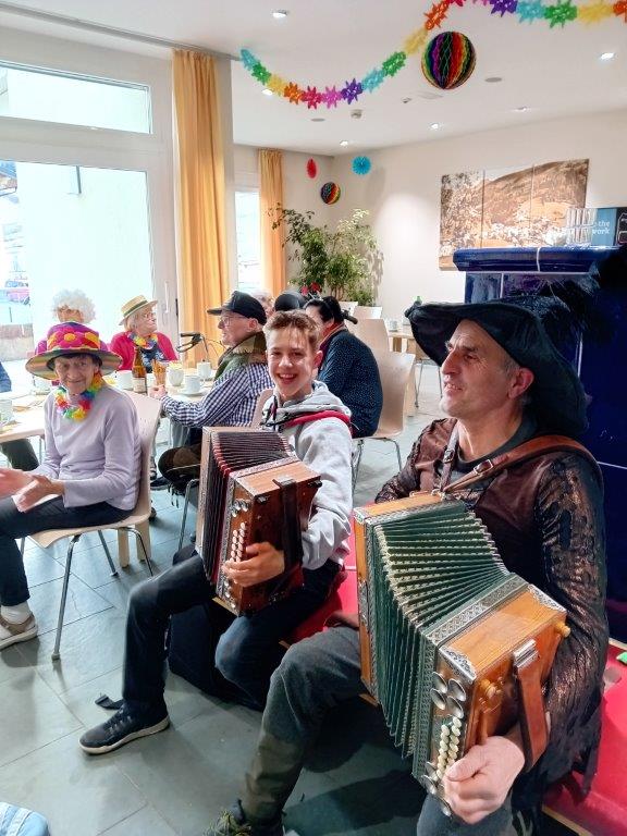 Im SeneCura Sozialzentrum Großarl gings gestern im wahrsten Sinne des Wortes „rund“. Bei der alljährlichen Faschingsfeier wurde getanzt, gesungen und ausgelassen gefeiert. Die Faschingskostüme wurden ausgepackt und es wurde sich kreativ verkleidet. Am Nachmittag rückten dann die beiden Musikanten „Wost“ und „Markus“ an, um mit ihren Steirischen Harmonikas ordentlich Stimmung zu bereiten. Bei leckeren Faschingskrapfen, Kaffee und mit lauter gutgelaunten Bewohner:innen und Besucher:innen aus dem Nebenhaus des „Betreubaren Wohnens“ genossen alle einen herrlichen Faschingsdienstags-Nachmittag.