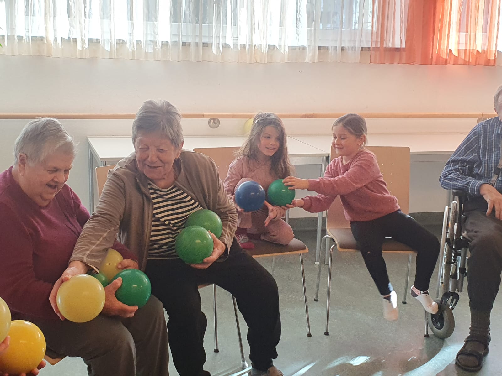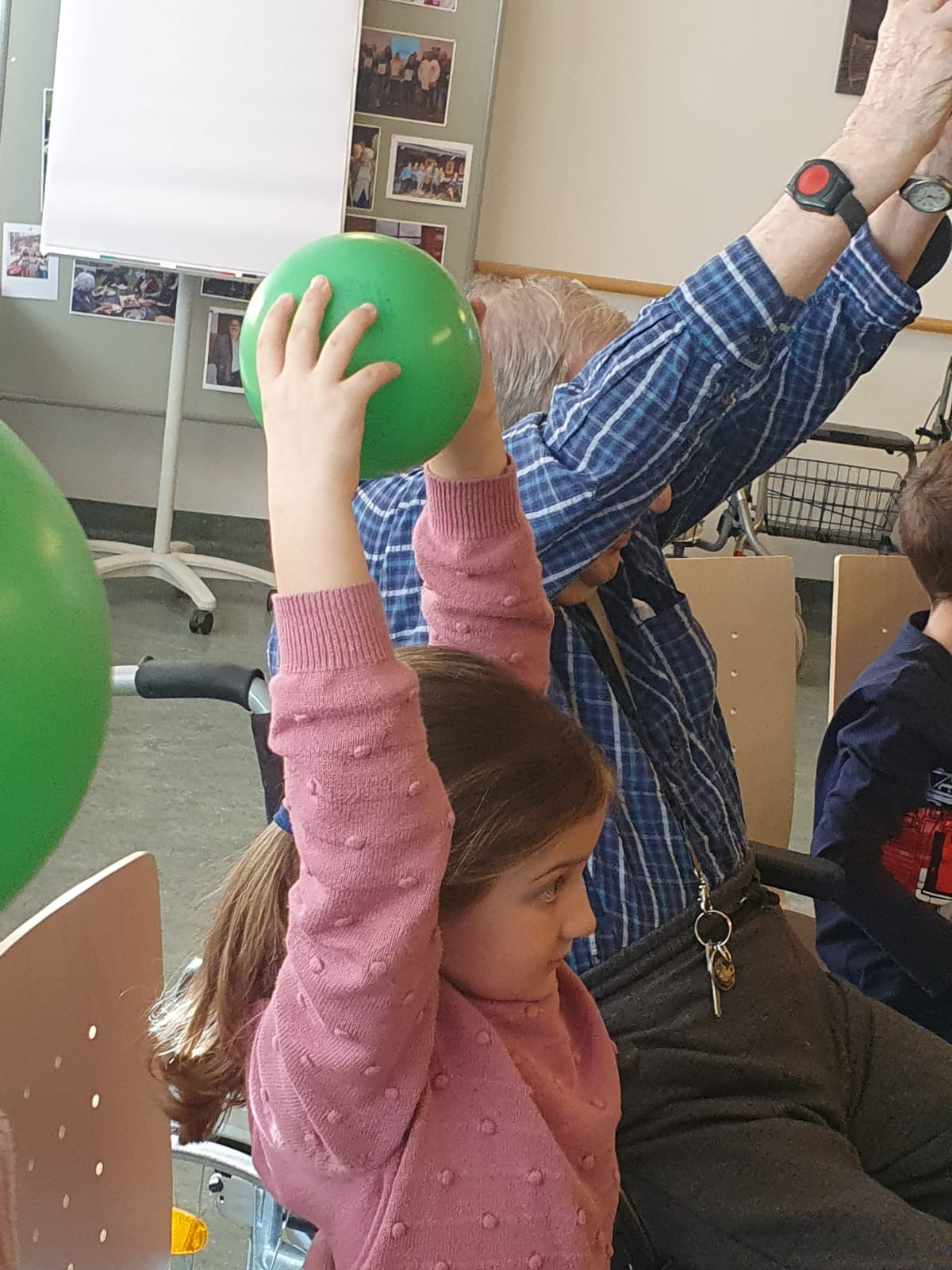 Jeden Montagvormittag kommt Physiotherapeutin Christa Hofer ins SeneCura Sozialzentrum Großarl, um eine Gruppe von Bewohner:innen mit Turnübungen zu mobilisieren. An diesem Montag bekam sie Besuch aus dem benachbarten Kindergarten und sechs Kinder unterstützten sie bei den Übungen mit den Seniorinnen und Senioren. Auf beiden Seiten war helle Freude zu sehen – und das SeneCura Sozialzentrum Großarl freut es immer wieder ganz besonders, wenn die „kleinen Nachbarn“ frischen Zunder in das Haus bringen.