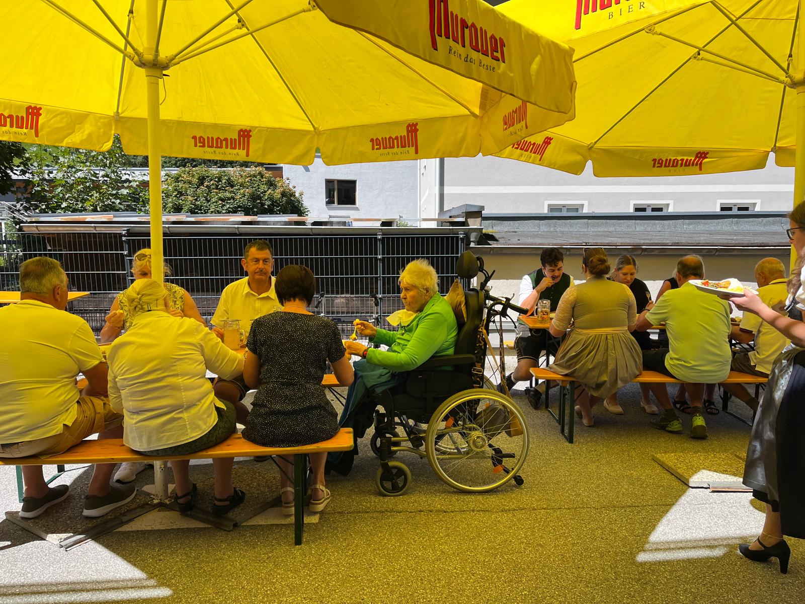 Auch heuer fand wieder das traditionelle „Schulgassenfest“ vor den Toren des SeneCura Sozialzentrums Großarl statt. Dazu waren alle Bewohner:innen, Mitarbeiter:innen, Angehörigen und Anrainer der Schulgasse ganz herzlich eingeladen. Die Bewohner:innen haben sich für diesen festlichen Anlass fein rausgeputzt und ein paar nette Stunden am Grillfest genossen. Die beiden Musikanten Roman und Diana spielten schneidig auf und der Wettergott hat das seine dazu getan. Bei Kotelett und einem kühlen Getränk stand der Feierlaune also nichts mehr im Wege. „Ich möchte mich von ganzem Herzen bei allen helfenden Händen, die das Fest alle Jahre wieder möglich machen, bedanken.“, so Hausleitung Wolfgang Gschwandl.