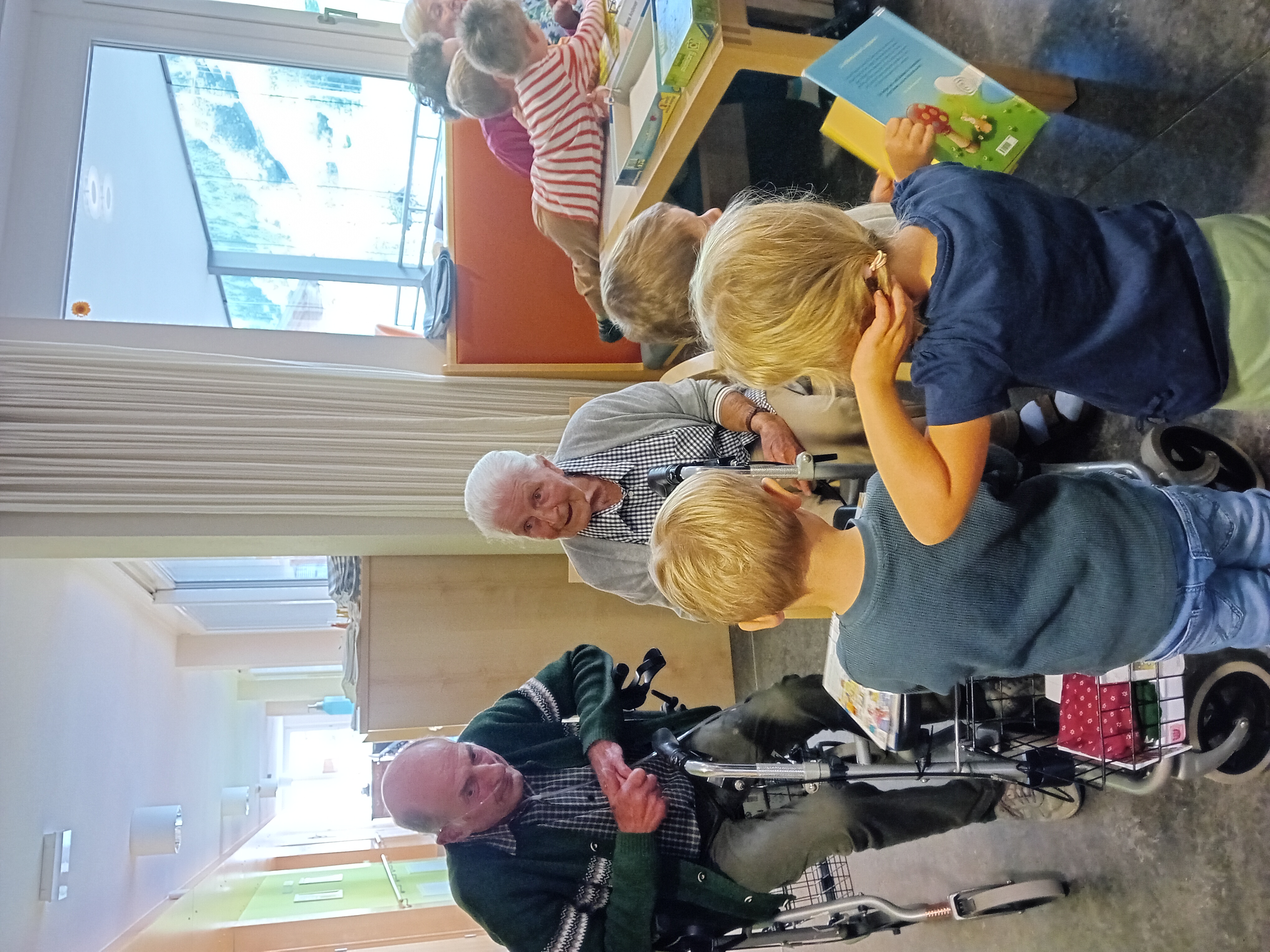 Letztens haben die kleinen Nachbarn vom Kindergarten wieder den monatlichen Besuch im SeneCura Sozialzentrum Großarl gestartet. Mit großer Begeisterung haben die Kinder aus der violetten Gruppe mit den Betreuerinnen Sarah und Sonja gesungen und schauten mit den Bewohner:innen des Hauses ihre mitgebrachten Bücher an. Die Begegnungen zwischen Jung & Alt sorgen für einige spannende Konversationen und leuchtende Augen. Die Bewohner:innen freuen sich bereits auf den nächten Besuch der kleinen Gäste aus dem Kindergarten.