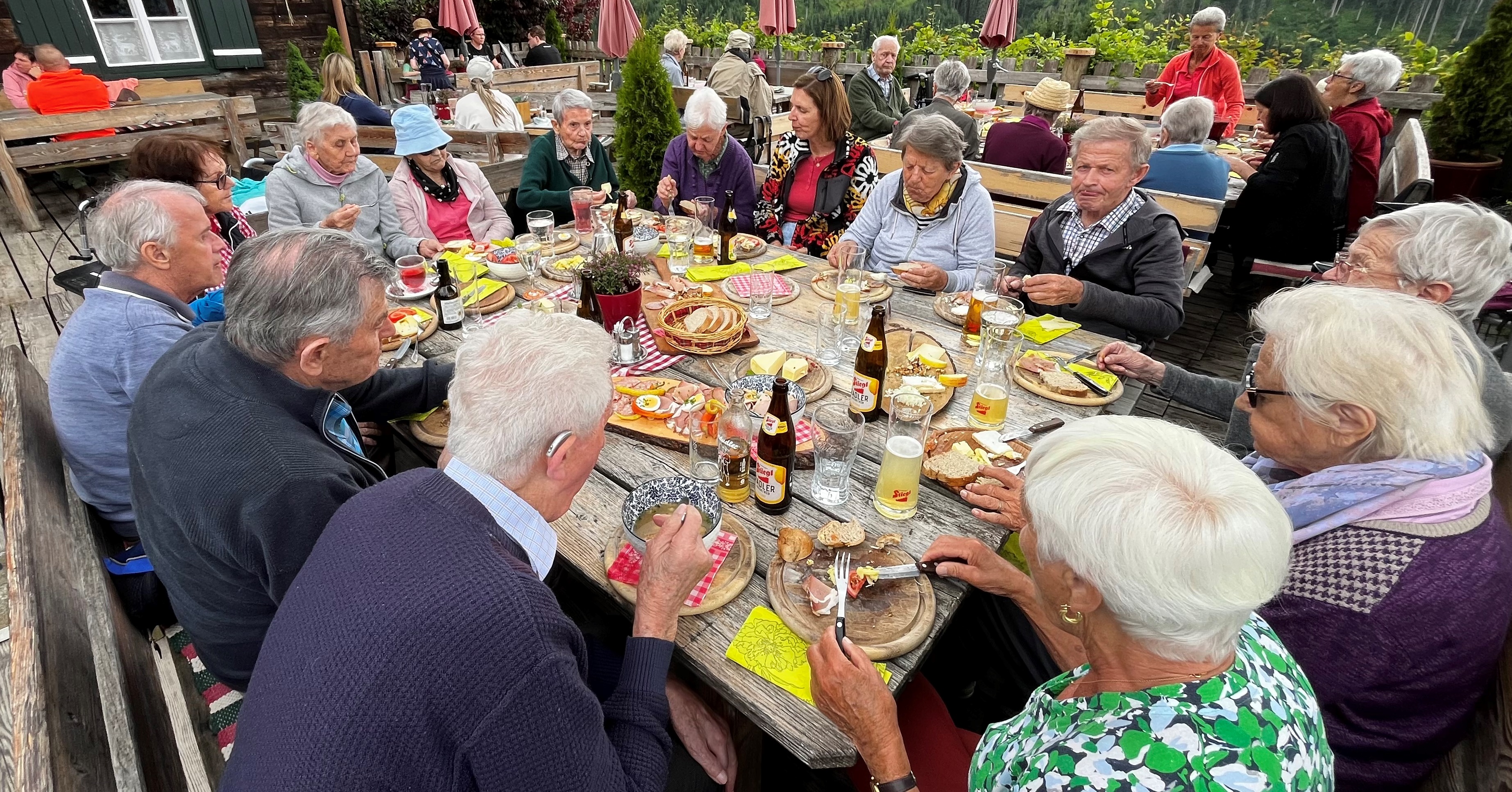 Vor Kurzem fand im SeneCura Sozialzentrum Großarl der jährlicher Almausflug – diesmal auf die Breitenebenalm – statt. Ca. 20 Bewohnerinnen und Bewohner folgten der Einladung und genossen bei gutem Wetter die hervorragende Almjause. Zwei Mitarbeiterinnen sangen mit den Bewohner:innen bekannte Lieder und ein Schnapserl durfte natürlich auch nicht fehlen, bevor es wieder mit dem Taxi zurück ins Sozialzentrum ging.