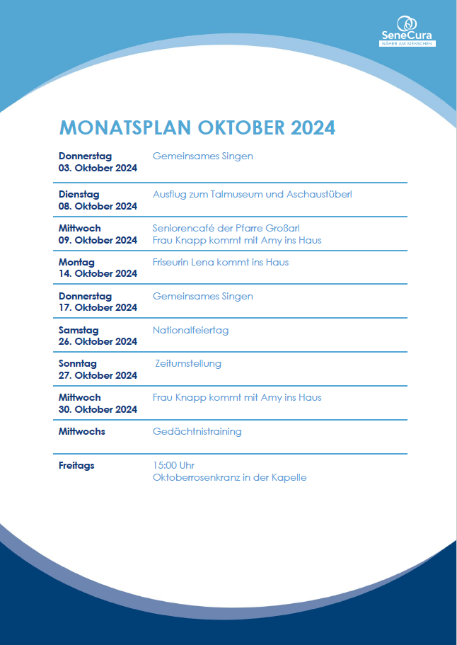 Monatsplan Großarl Oktober